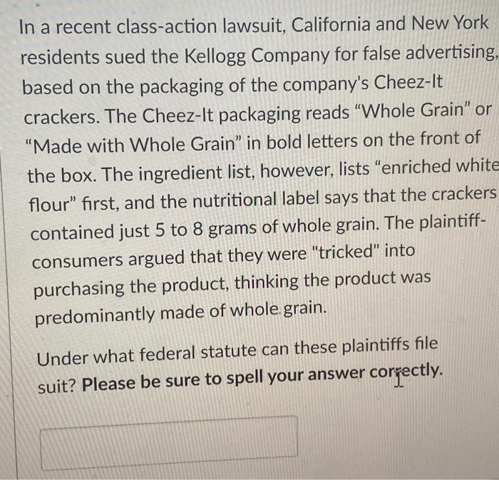 Solved In A Recent Class Action Lawsuit California And New Chegg Com